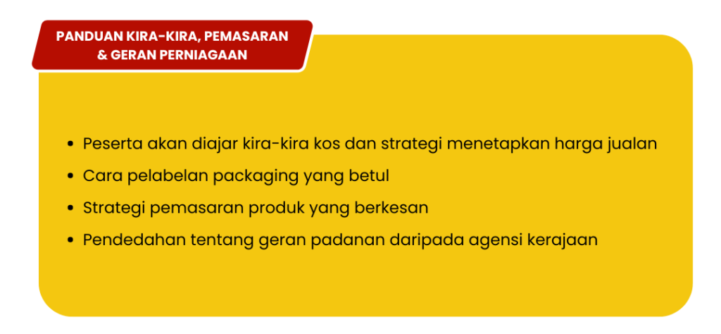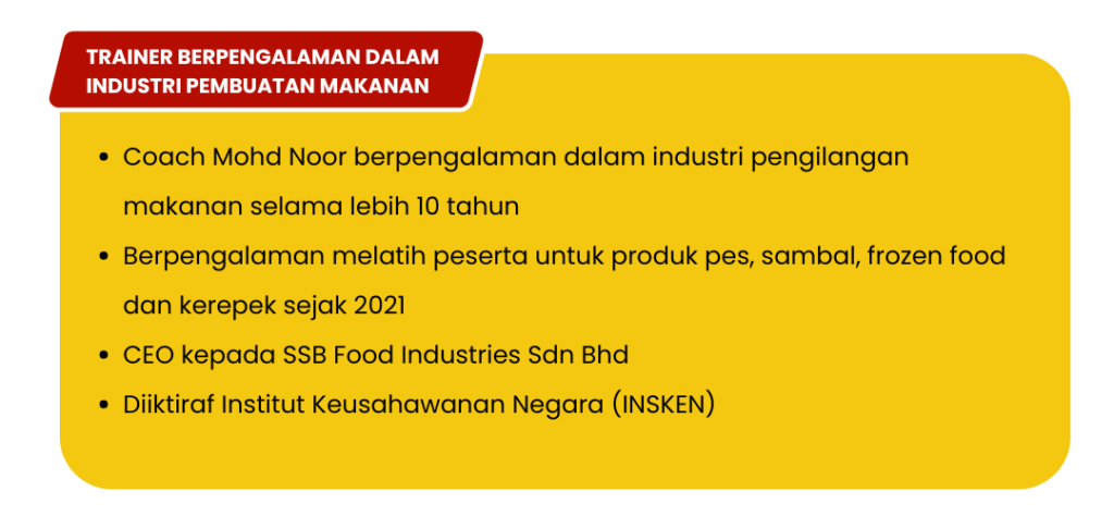 Ini adalah “tailored” program yang dianjurkan oleh SSB Food Industry Sdn Bhd kepada para usahawan kecil dan Homebased.
